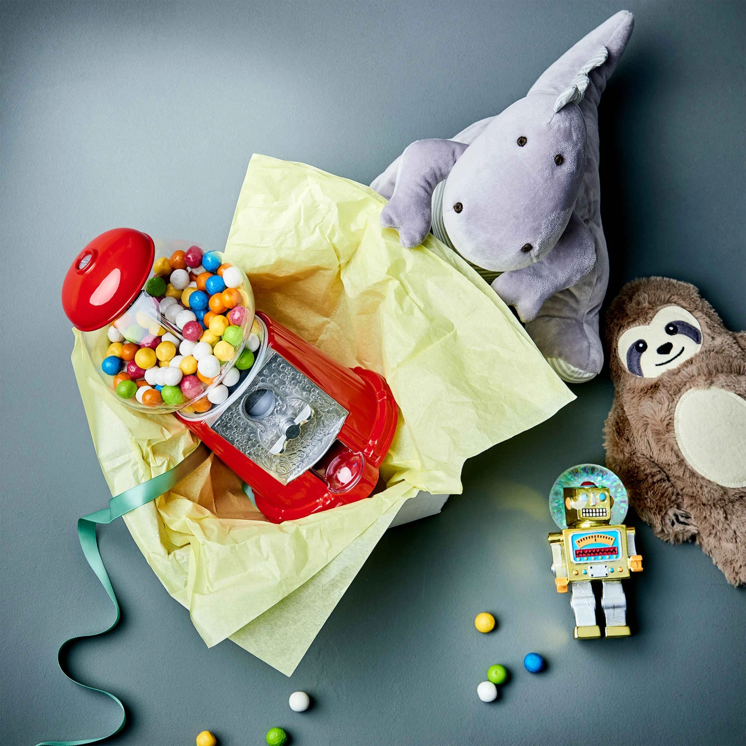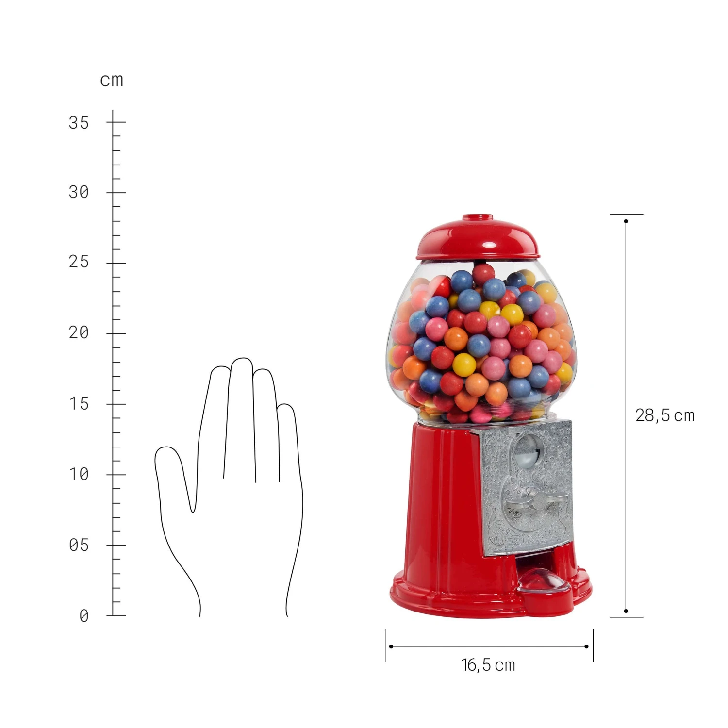 Der Big Spender Kaugummi-Automat im Nostalgie-Look verteilt nicht nur Süßes, sondern dient gleichzeitig auch als Spardose. Schon ab einem Cent spendiert er Kugeln zum Kauen, größere Münzen funktionieren aber auch. Bubbles Kaugummis zum Nachfüllen (10209669) separat erhältlich.