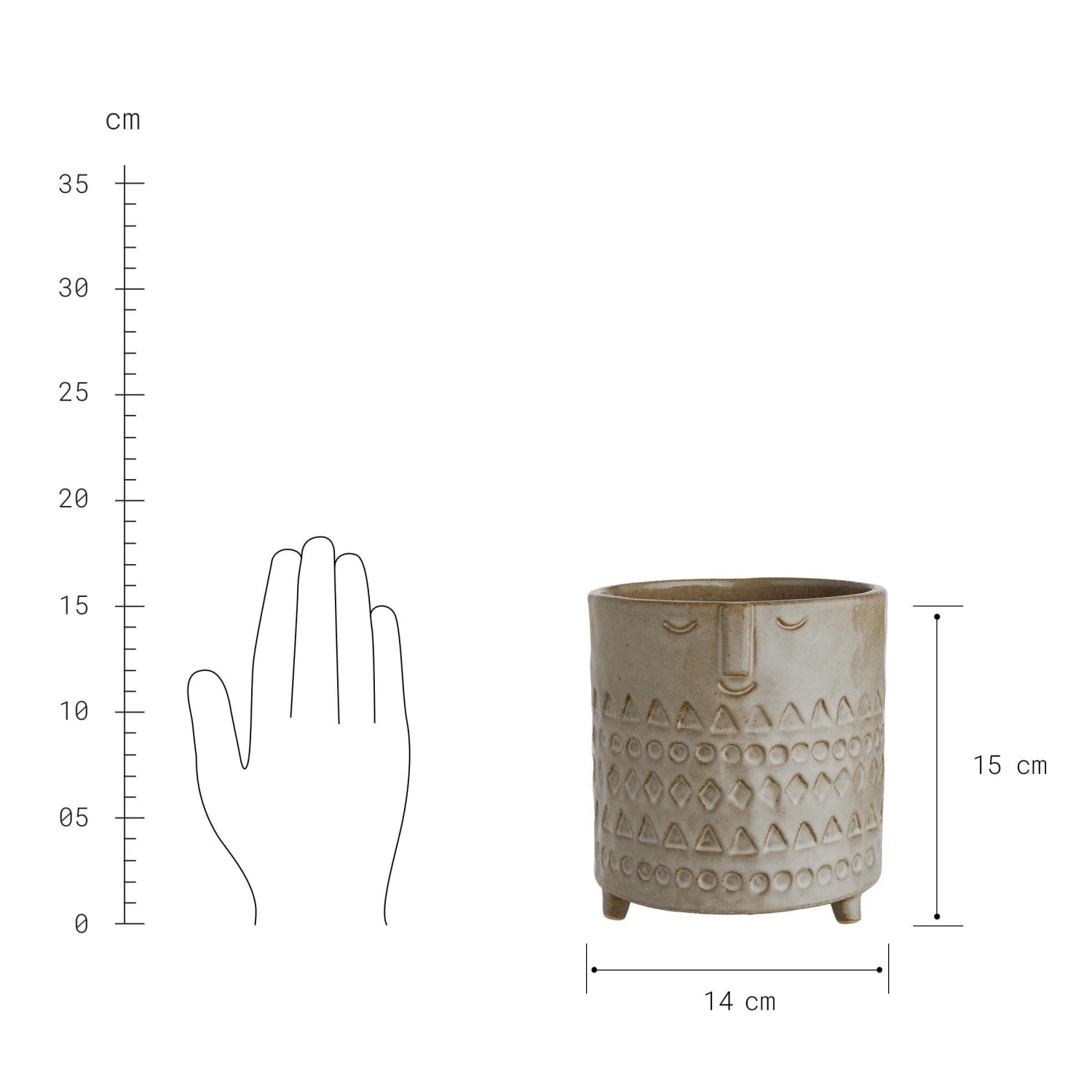 Ihr Fernweh leben Sie in trendigen Ethno-Accessoires für Ihr Zuhause aus – mit dem Ethno Blumentopf mit Gesicht aus hellbraunem Porzellan. Der Blumentopf lässt sich mit frischen Kräutern oder Sukkulenten beispielsweise auf Fensterbänken platzieren oder auf dem gedeckten Tisch gruppieren. Oder Sie lassen die Pflanze weg, und dekorieren den Blumentopf als Blickfang im Regal.