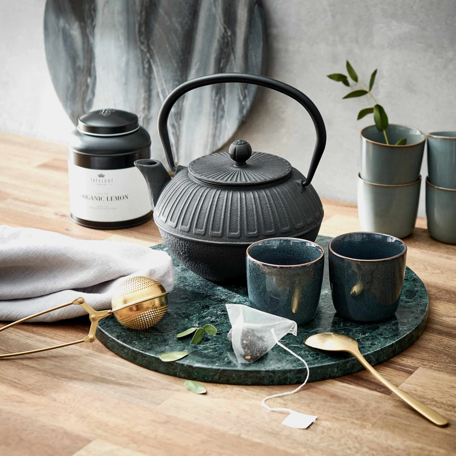 Ob morgens oder nachmittags, ob mit grünem oder schwarzem Tee, ob mit einem Schuss Milch oder einem Stück Gebäck – Sie entwickeln Ihre ganz private Tee-Zeremonie mit der Ceremony-Teekanne aus grauem Gusseisen. Die Form dieser Teekanne ist asiatisch inspiriert, im Inneren verbirgt sie einen Siebeinsatz. Schwere Ausführung.