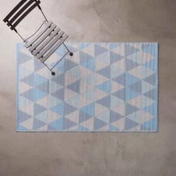 Weil Sie auf wohnlich und zugleich pflegeleicht stehen, legen Sie sich den modernen Colour Clash In- & Outdoorteppich mit pastellblauen Dreiecken und Bastteppich-Struktur zu Füßen. Und das nicht nur auf Ihrer Küche oder Ihrem Esszimmer, sondern gerne auch im Flurbereich. Aus robustem Kunststoffgewebe, UV-beständig.
