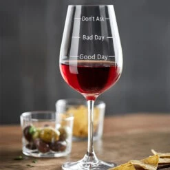 Wie war Ihr Tag? Mit dem Don’t Ask Weinglas geben Sie stillschweigend die Antwort und lassen allen Stress und Trubel einfach mal hinter sich. Tipp: Besonders originell auch als Geschenk oder Mitbringsel, zum Beispiel in Kombination mit einer Flasche Wein.