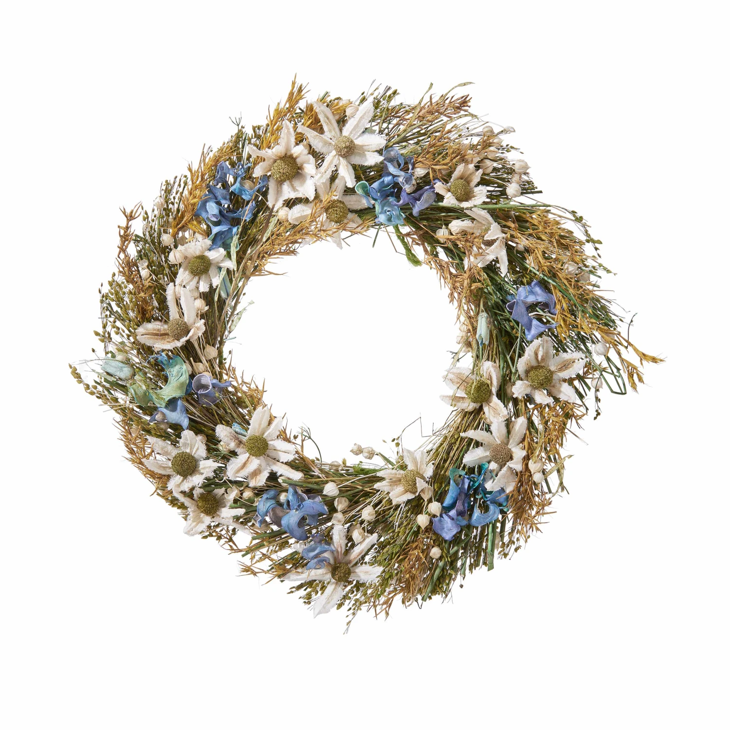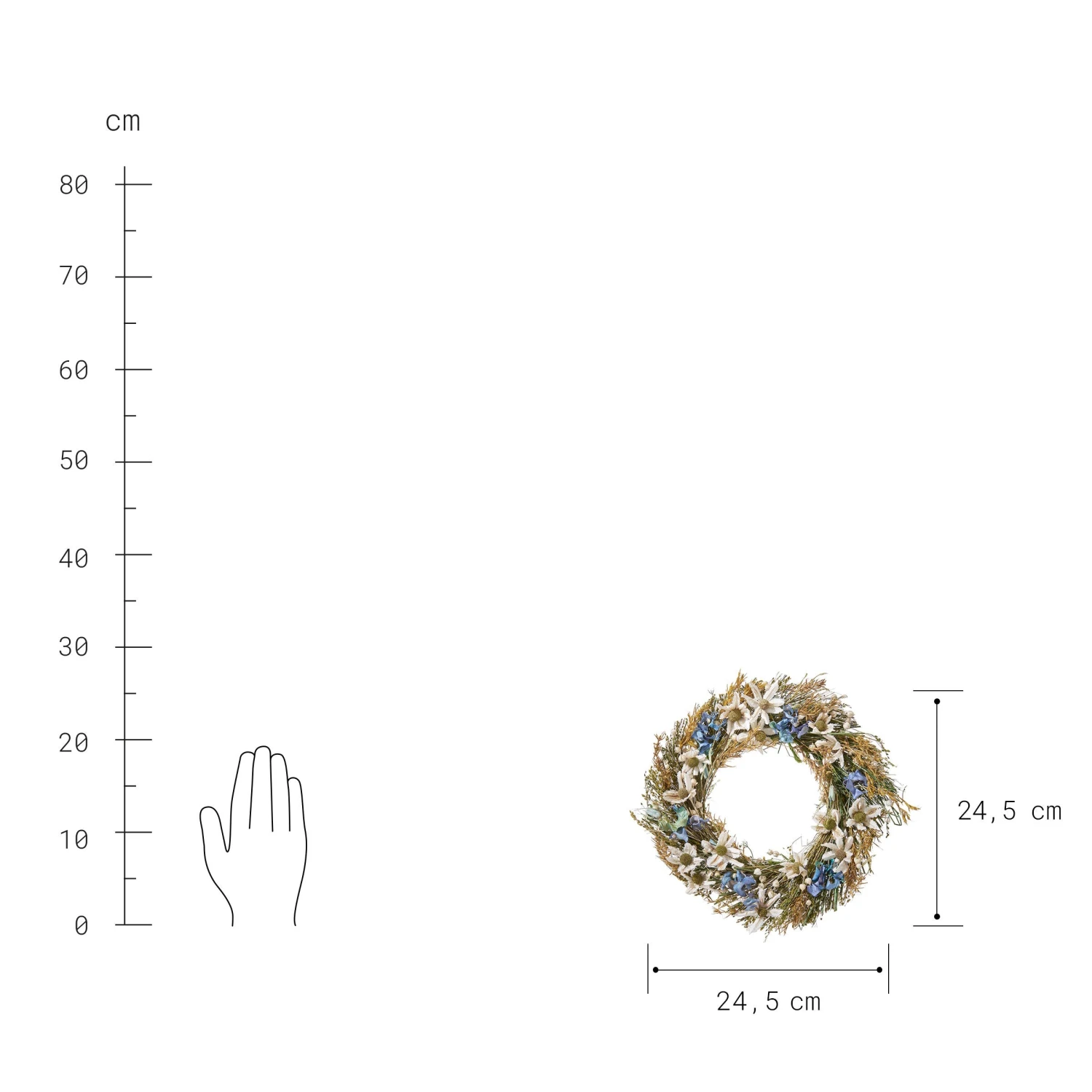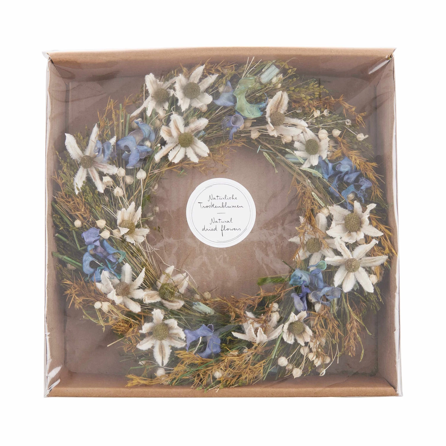 Dekos mit Trockenblumen sind ja so angesagt – und jetzt noch schöner mit dem Flower Market Trockenblumenkranz bunt. Dieser dekorative Kranz mit gut 24 cm Durchmesser wird zum Hingucker auf Ihrem gedeckten Tisch – und sogar zum verspielten Highlight Ihrer festlichen Tafel. Einfach Kerzen und Servietten farblich darauf abstimmen, und schon ist der Look perfekt. Mit sorgfältig zusammengestellten Trockenblumen und langer Haltbarkeit – ganz ohne Pflege. In weiteren Varianten erhältlich, zudem gibt es passende Serviettenringe.