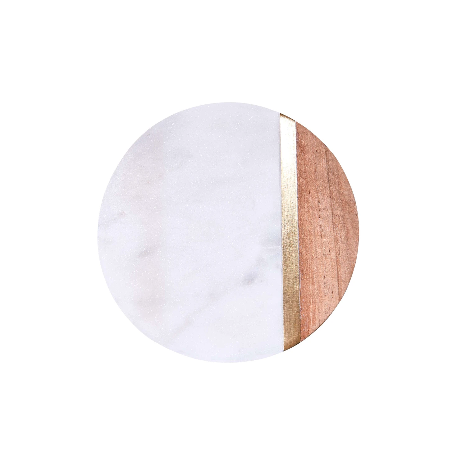 Aller guten Dinge sind drei: Matter Marmor, glänzendes Messing und warmes Akazienholz gehen bei diesem runden Marble Kitchen Untersetzer im 4er-Set eine stilvolle Verbindung ein. Solche erlesenen Küchenutensilien und Schmuckstücke für den gedeckten Tisch verschenkt man gerne – oder lässt sie sich von lieben Menschen schenken.