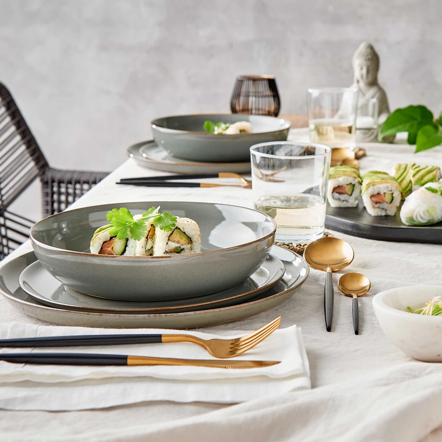 Mit unserer Geschirrserie Native im angesagten minimalistischen Design kommt der neue Trend auf den gedeckten Tisch! Der Pastateller im 4er-Set aus Steinzeug in der Farbe Weiß ist handgefertigt in Portugal und hat eine dünne und hochwertige Scherbe mit einer klaren Formgebung. Durch die reaktive Glasur mit kleinen Kristalleinschlüssen wird jedes Teil der Serie zu einem echten Unikat. Der unglasierte Boden, der das Rohmaterial zum Vorschein bringt, sorgt für einen formvollendeten Manufaktur-Look. Jedes Teil der Serie ist spülmaschinen- und mikrowellengeeignet.