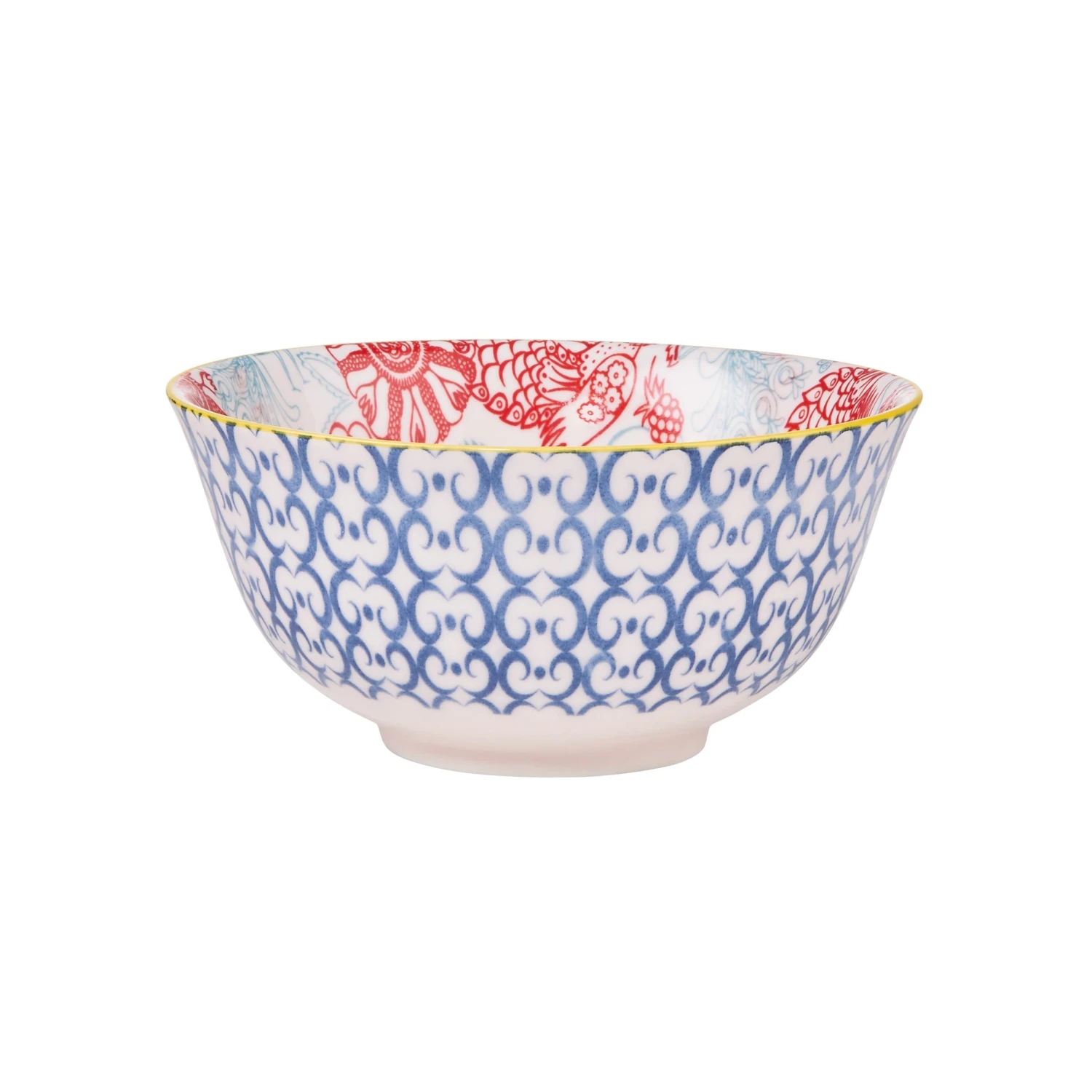 Schale mit Stil: Das bunte Ornaments-Geschirr passt in jede moderne Küche und ist ein stylischer Blickfang auf Ihrem Esstisch. In dieser blau-roten gemusterten Porzellanschale im 6er-Set können Sie Ihren Gästen leckere Kleinigkeiten servieren. Vielseitig einsetzbar: Als Müslischale, als Suppenschale, für Süßigkeiten, Chips und andere Snacks. In verschiedenen Varianten und Größen erhältlich.