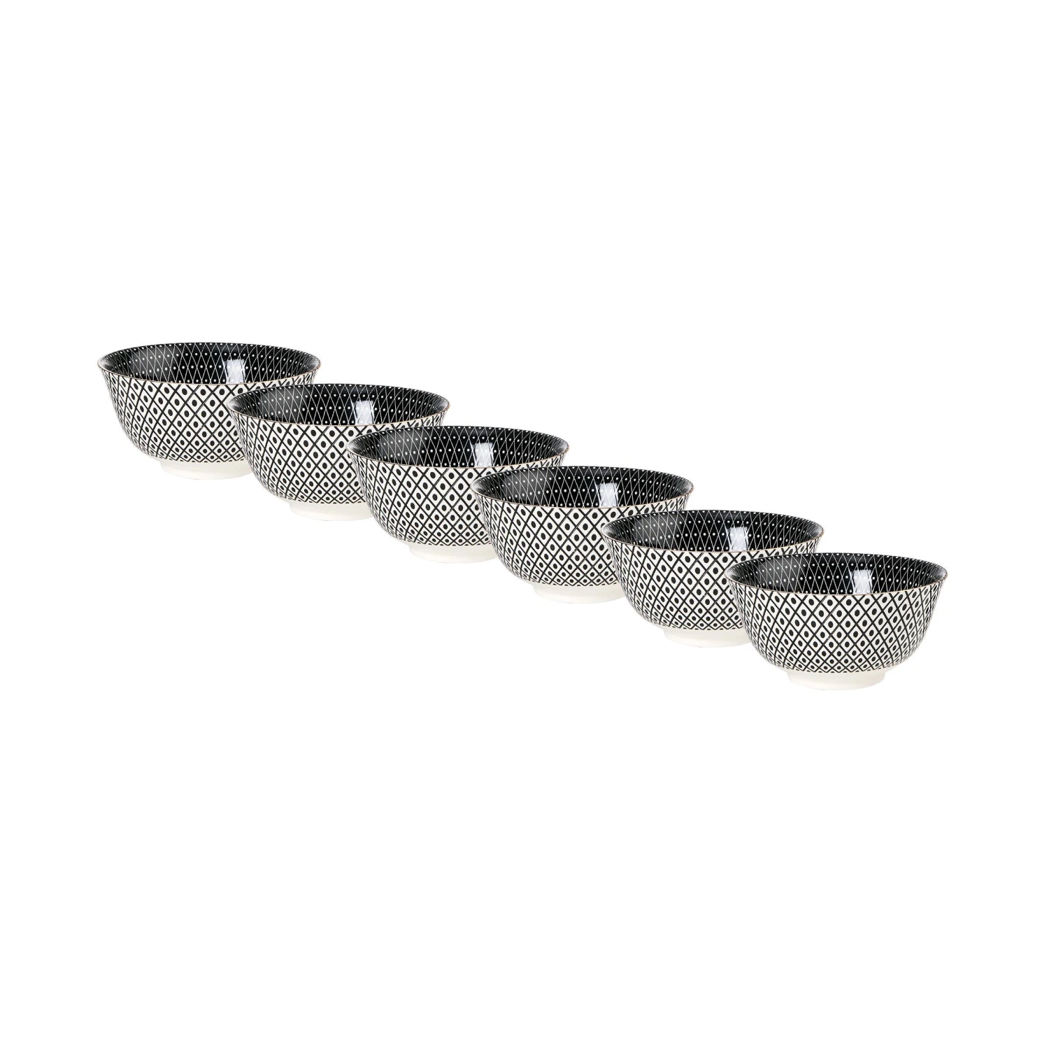 Schale mit Stil: Das bunte Ornaments-Geschirr passt in jede moderne Küche und ist ein stylischer Blickfang auf Ihrem Esstisch. In dieser schwarz-weiß gemusterten Porzellanschale im 6er-Set können Sie Ihren Gästen leckere Kleinigkeiten servieren. Vielseitig einsetzbar: Als Müslischale, als Suppenschale, für Süßigkeiten, Chips und andere Snacks. In verschiedenen Varianten und Größen erhältlich.