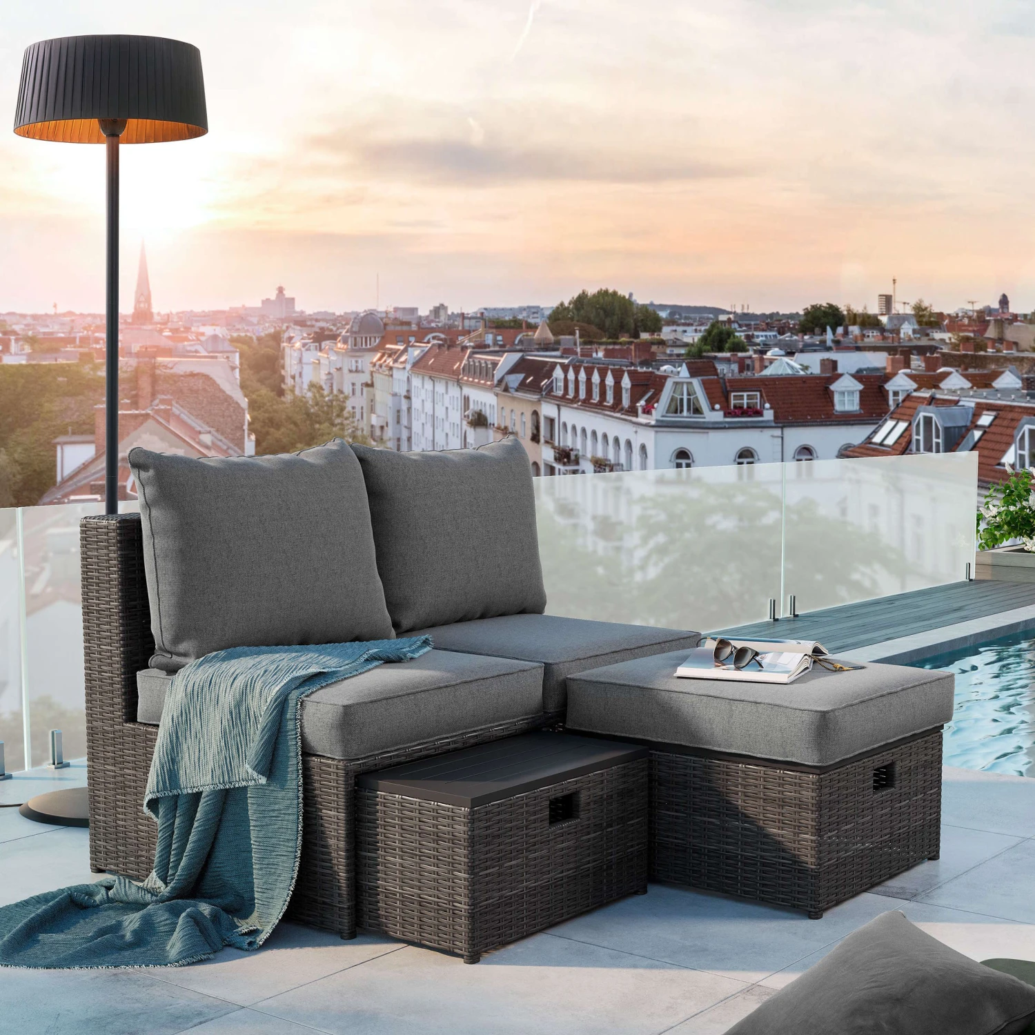Einfach draußen sitzenbleiben: Lange Abende auf Balkon und Terrasse genießen Sie jetzt mit dem Patio Halogenheizstrahler. Aus Liebe zur Umwelt verzichtet er auf Gas und heizt Ihnen lieber mit strombetriebenen Halogen-Heizröhren angenehm ein. Funktional überzeugt er außerdem mit einfacher Bedienung und Sicherheitsabschaltung bei Umkippen. Ihr Herz erwärmen wird dieser Heizstrahler auch mit seiner Optik, geprägt von modernem Design und einem dekorativem Textilschirm.