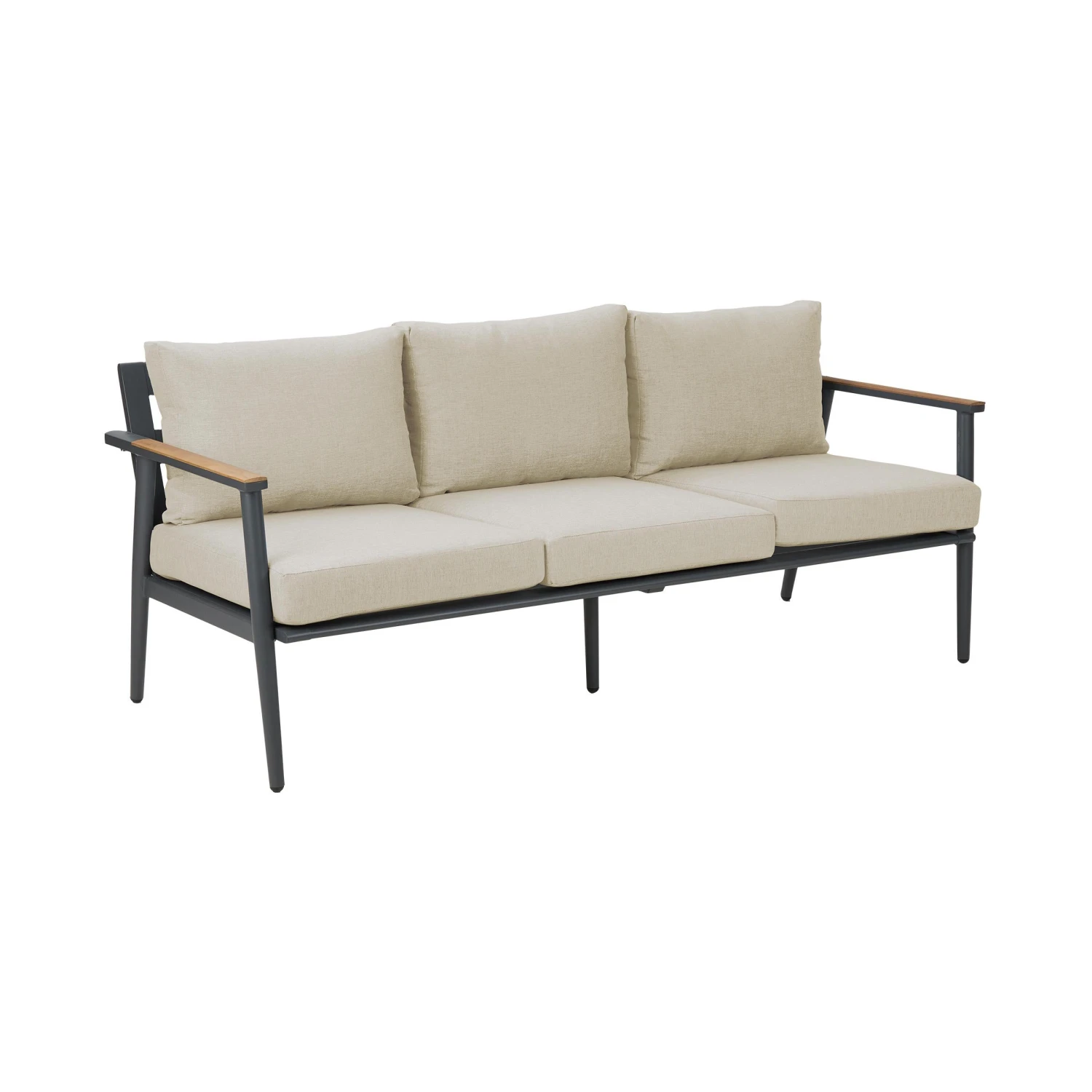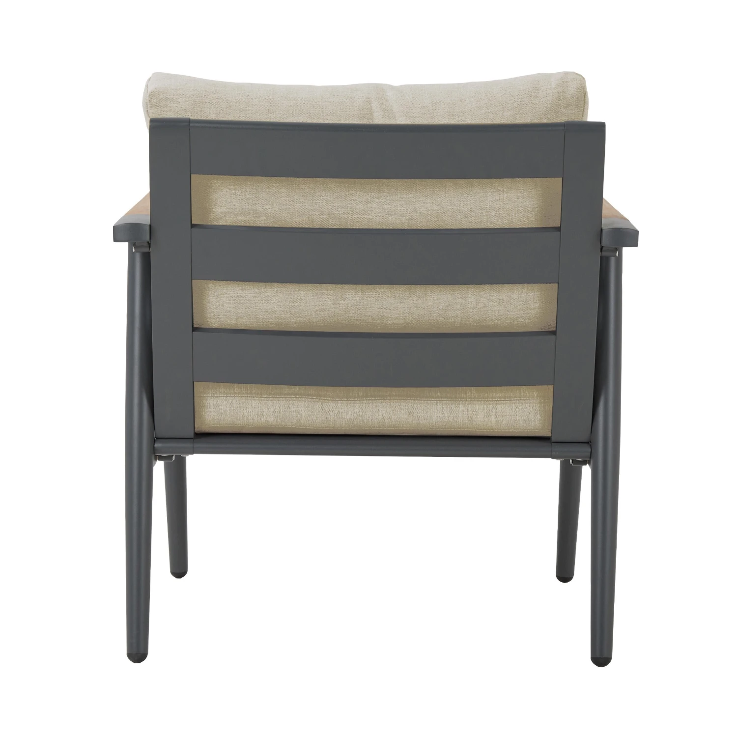 Sie verwandeln Ihre Terrasse oder Ihren größeren Balkon in eine stylische Outdoor-Lounge mit dem 4-teiligen Teak Time Lounge-Set. Bis zu 5 Personen finden hier Platz – und das ganz gemütlich mit allem Komfort. Dafür sorgen Armlehnen an Sofa und Sesseln, bequeme, wasserabweisende Kissen und der gut 110 cm lange Tisch mit Tischplatte aus FSC®-zertifiziertem Teakholz, auf dem Sie Getränke, Snacks und mehr bequem abstellen können. Optisch setzt das moderne Gartenmöbelset auf die zeitgemäße Kombination von Grau, Beige und Natur, da können Sie auf Wunsch mit zusätzlichen Kissen, Deko und Outdoor-Teppichen farbige Akzente setzen.