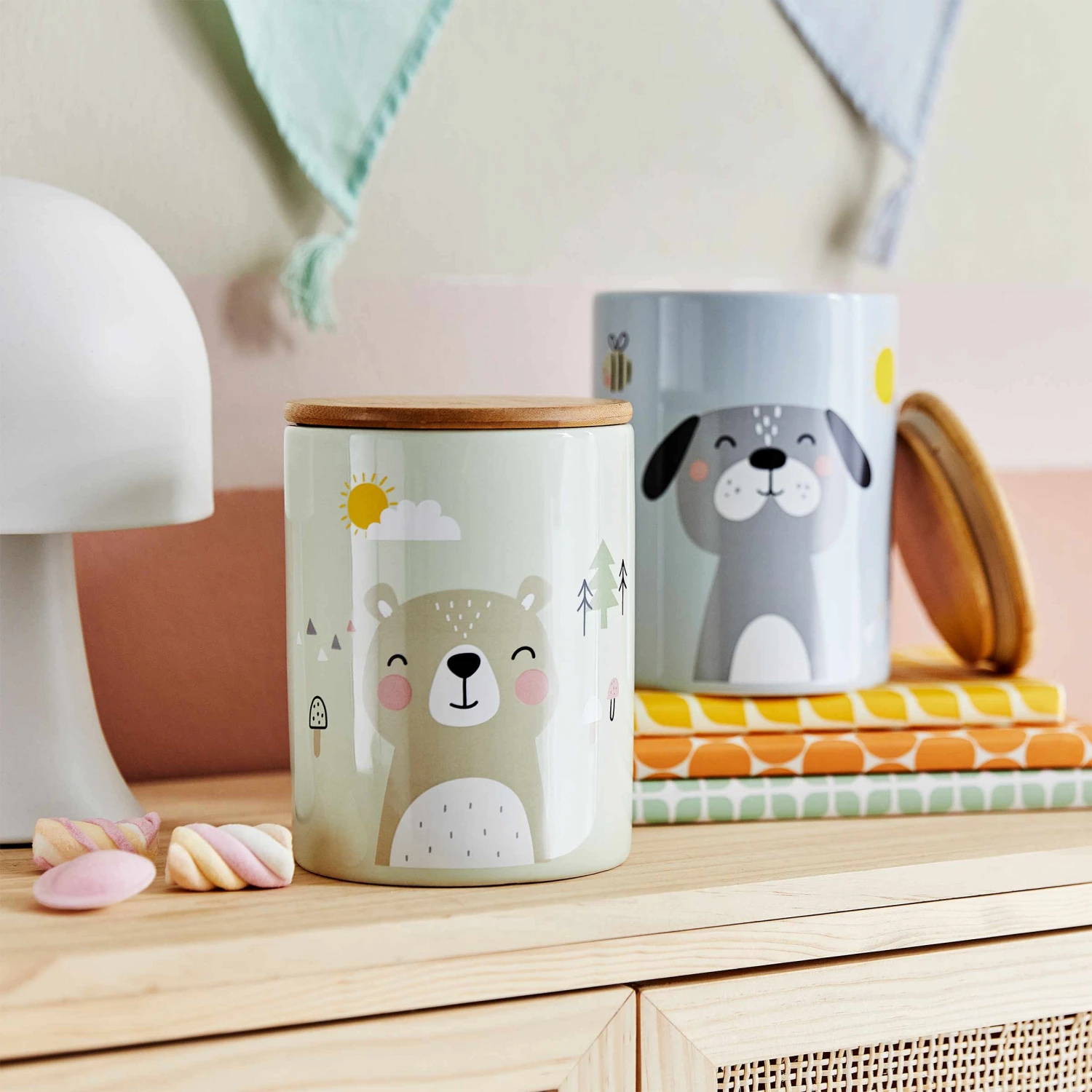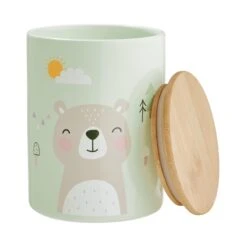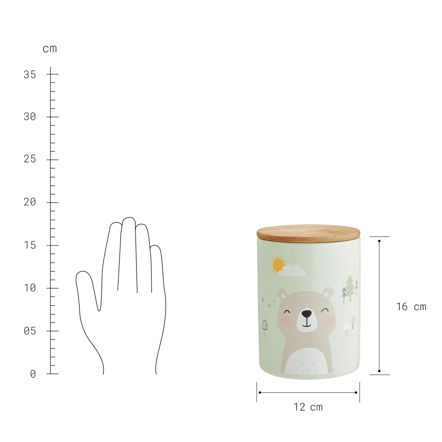 Bastelsachen, Schlüssel, kleine Schmuckstücke und alle möglichen Fundstücke sind in der Tiny Town Aufbewahrungsdose Kinder Bär bestens aufgehoben. Dank Silikondichtung schließt der Deckel der hübsch dekorierten Dose besonders dicht, so dass auch nichts herausfällt, wenn die Dose mal mit Schwung durch das Kinderzimmer getragen wird. Optisch kann sich die Dose übrigens gut auf dem Nachttisch, dem Schreibtisch oder einer Kommode sehen lassen und verschönert dort das Kinderzimmer.