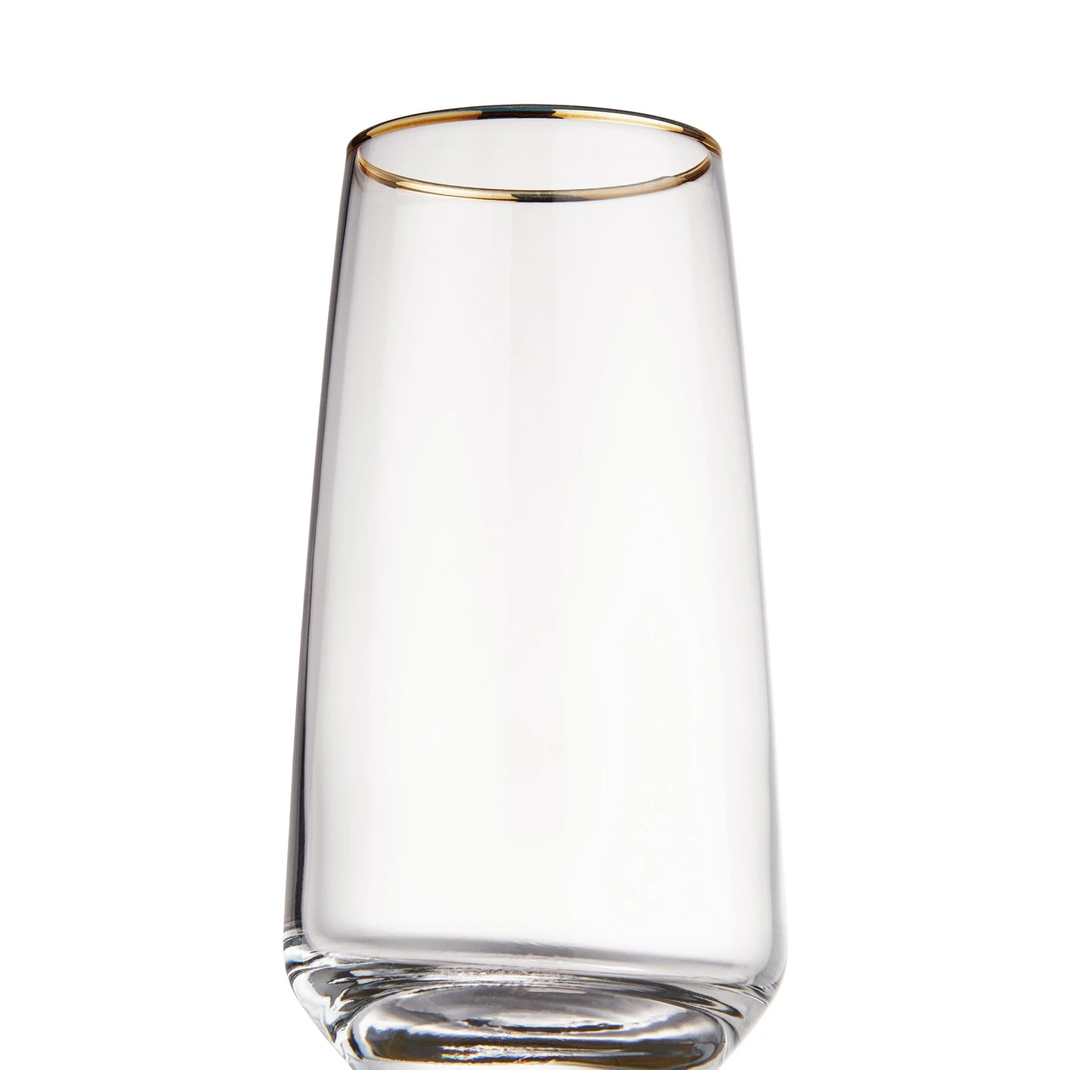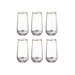 Da passt was rein: In unserem modernen Touch of Gold Longdrinkglas 480 ml im 6er-Set haben auch großzügig eingeschenkte Longdrinks Platz – inklusive einer ordentlichen Portion Eiswürfel. Da sitzen Sie und Ihre Gäste beim Essen und Feiern nicht so schnell auf dem Trockenen. Passendes Wasserglas erhältlich.