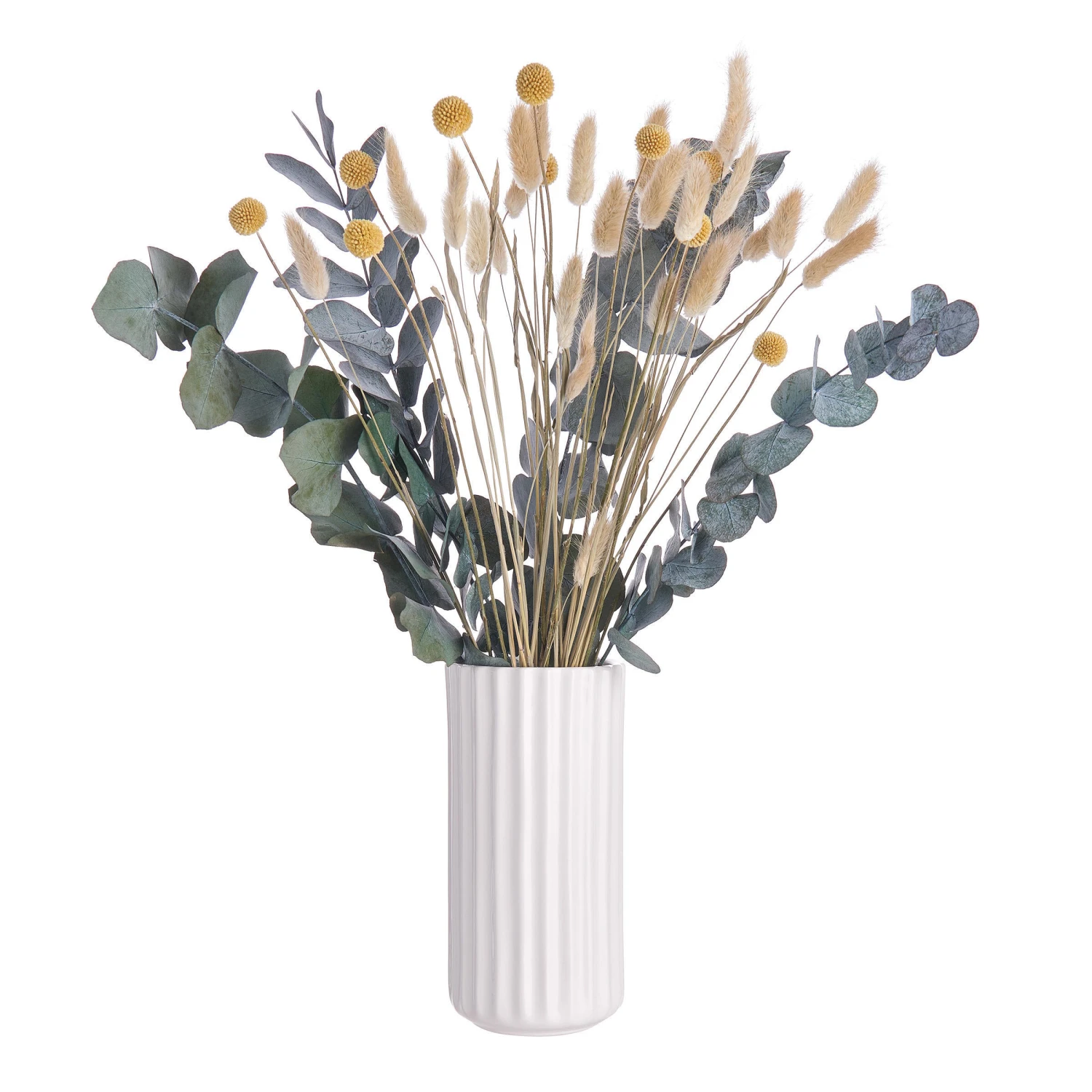 Eukalyptus: Länge 60 cm, Craspedia & Lagurusgras: Länge: 70 cm
