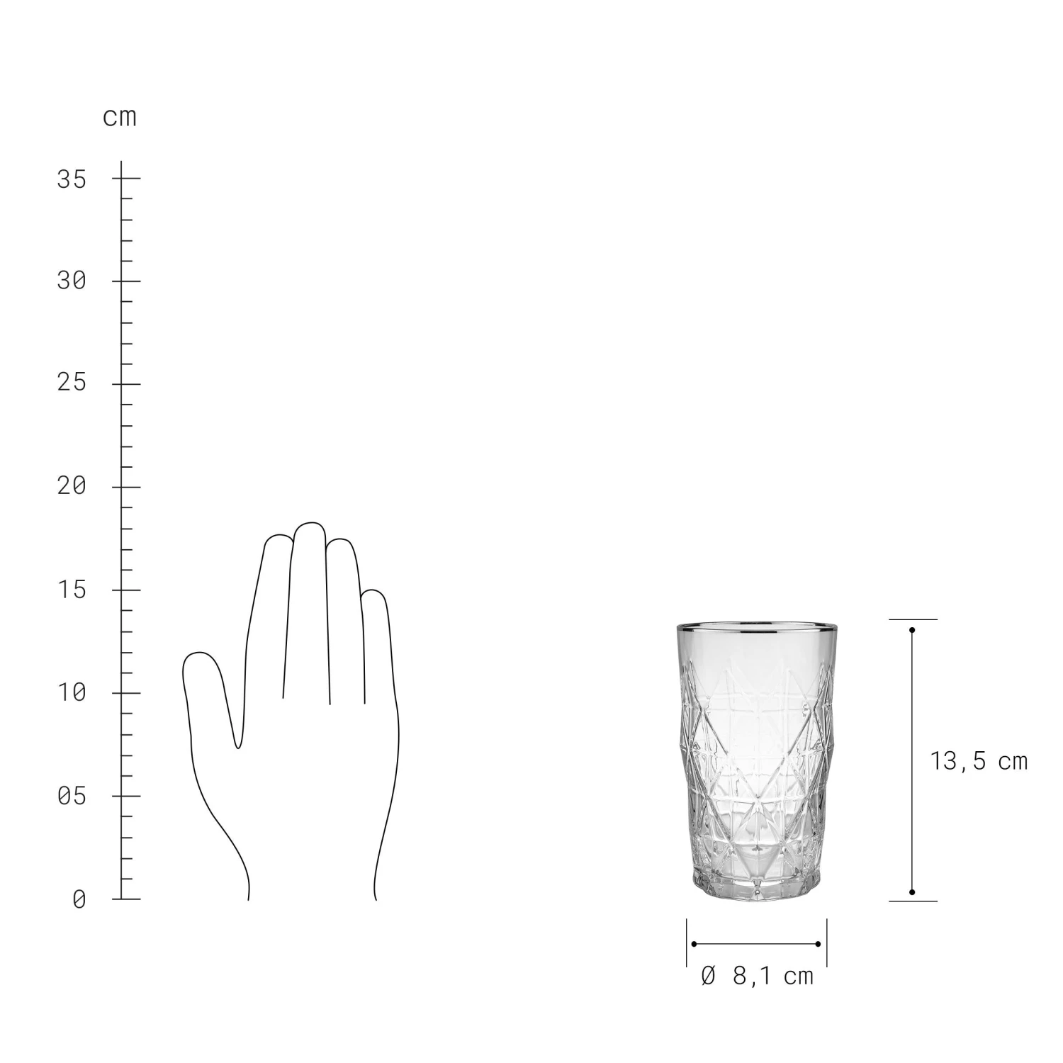 Stil ist, wenn alles passt. Deshalb servieren Sie Ihren Gin Tonic oder Wodka Lemon im eleganten Upscale Longdrinkglas im 6er-Set mit Facetten. Das hat einfach Glamour – genau wie Sie als Gastgeberin oder Gastgeber.